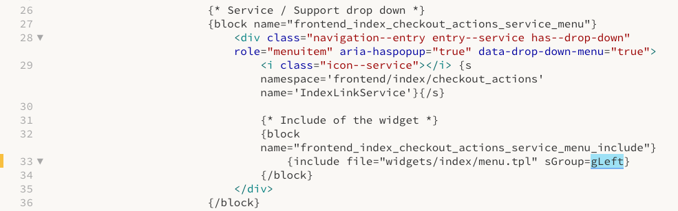 Nach einem Shopware Upate auf 5.6.4 verschwand das Dropdown **Service/Hilfe.** Ein Blick ins Template: themes/Frontend/Bare/frontend/index/topbar-navigation.tpl, Zeile 33 zeigte, dass die s_cms_static_groups dort sGroup = left hieß. In der Datenbank stand aber gLeft. Jetzt gibt es zwei Möglichkeiten, entweder im Template left => gLeft ändern oder in der DB die Static Groups aufrufen: